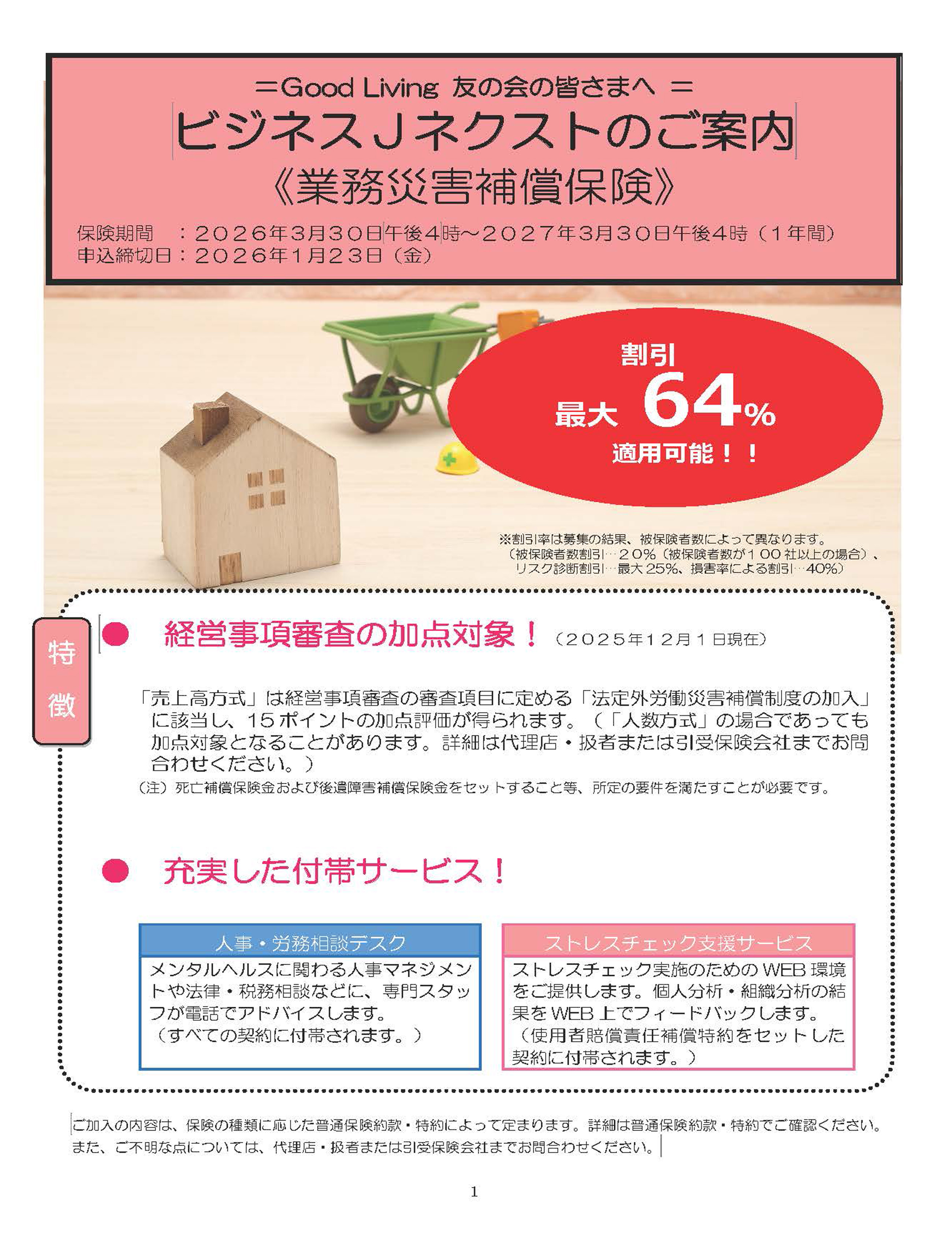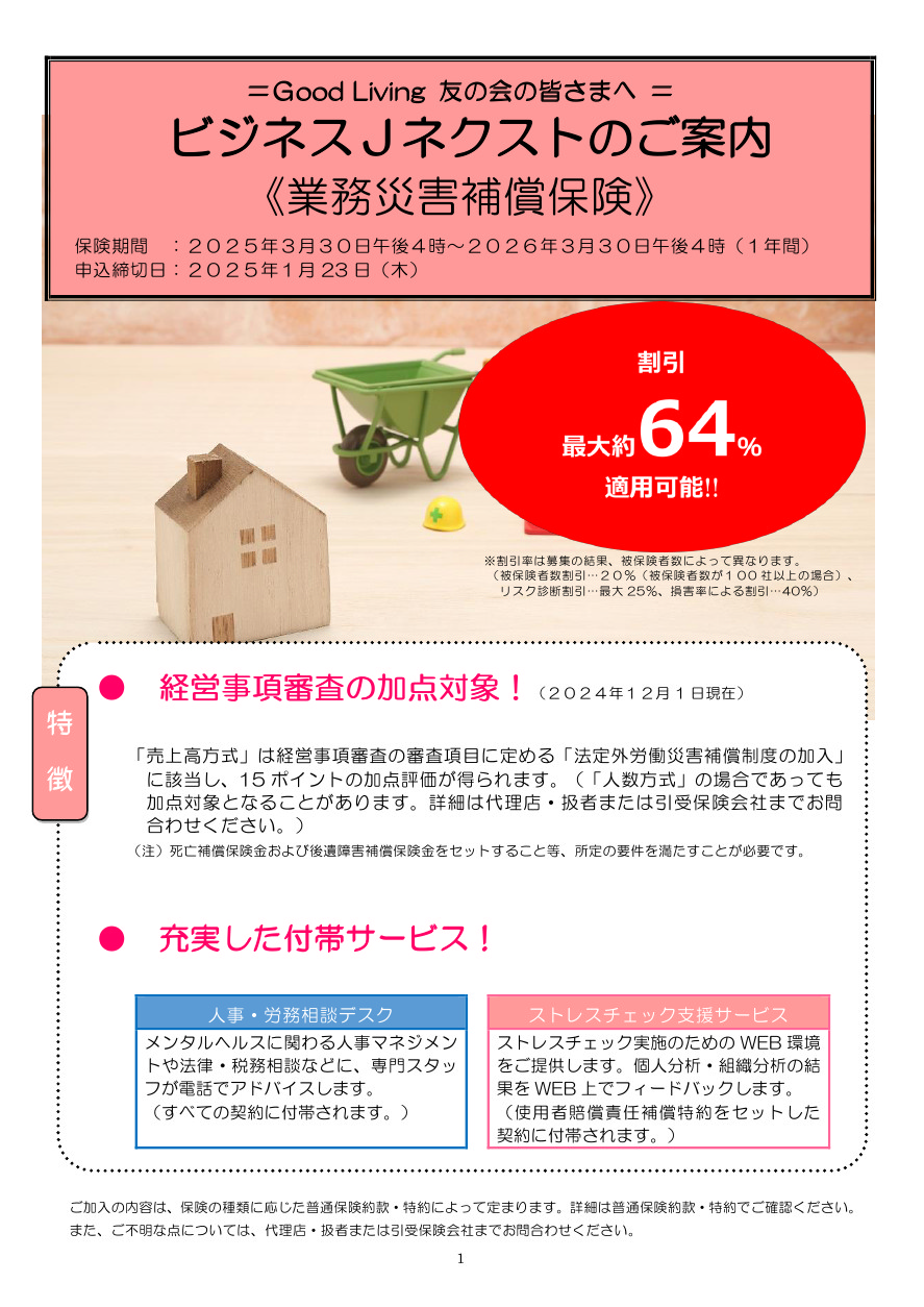 グッドリビング友の会業務災害補償保険についてのお問い合わせは弊社まで